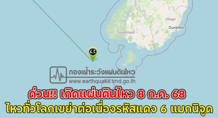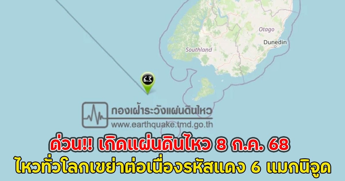 ขณะที่ผลการตรวจเช็กแผ่นดินไหวทั่วโลกเรียกว่าใช้รหัสแดงได้เลย เกิดขึ้นที่ Off West Coast of South Island, New Zealand ขนาดความสั่นมากถึง 6.3 แมกนิจูด ห่างจากประเทศไทยอยู่ที่ 9,350 กิโลเมตร